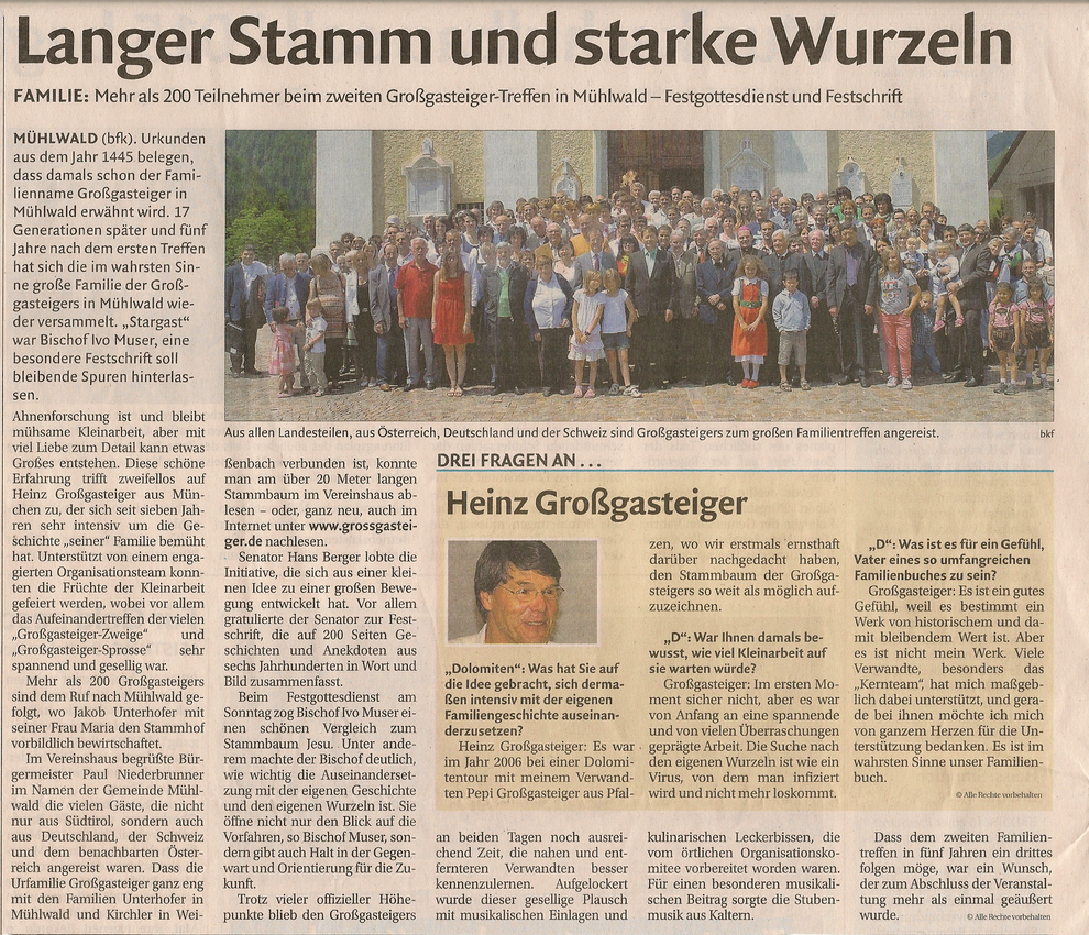 - Festschrift zum 1. Treffen von Heinz Großgasteiger